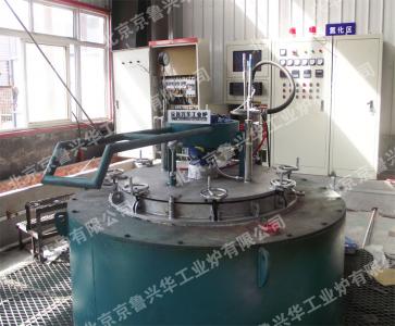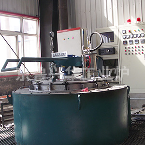 爐殼由角鋼與鋼板焊成。爐膛使用本公司自行研發(fā)的“新型不定型組合爐襯”制作,爐膛與爐殼間填充不保溫材料。爐膛內壁放置鐵鉻鋁絲繞制的螺旋形加熱元件,爐膛中央安置爐罐,爐罐內放置料框。爐罐上有爐蓋,爐蓋升降由電動(dòng)升降機構完成,風(fēng)機安裝在爐蓋上,風(fēng)機軸穿過(guò)爐蓋伸到爐罐內并裝有風(fēng)葉。風(fēng)機軸上有水冷套,氣體經(jīng)由安裝在爐蓋上的氣管進(jìn)入爐內。